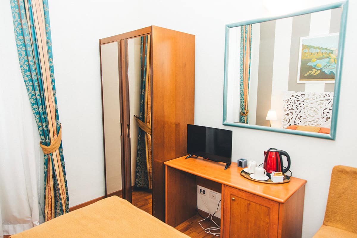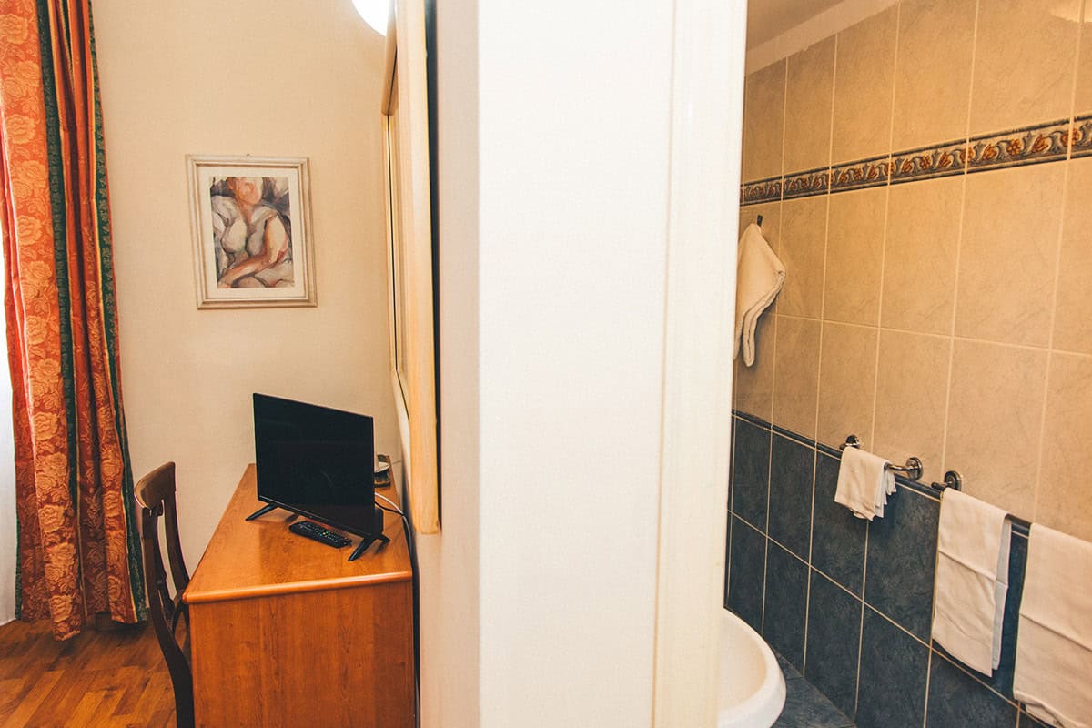 In questa camera l’eleganza si fonde con il comfort, creando un rifugio ideale per chi cerca una pausa dalla frenesia quotidiana. L’atmosfera è calda e invitante, una vera celebrazione della tradizione toscana.